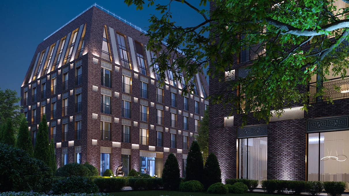 «Долгоруковская, 25» представлен двумя монолитно-кирпичными корпусами. Это пятиэтажные клубные дома с панорамным остеклением, выполненные в европейском стиле. Дизайнерские решения органично сочетают классику и современный стиль. Вечером и ночью дома будут подсвечиваться, что придаст им дополнительный лоск.