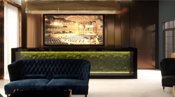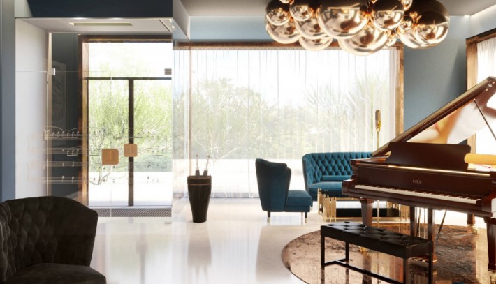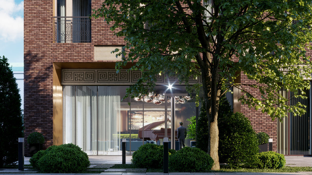 Отдавая дань великим композиторам таким, как Михаил Иванович Глинка, Модест Пе - трович Мусоргский, Петр Ильич Чайковский, Николай Андреевич Римский-Корсаков, которые проживали и творили в этом районе, интерьер вестибюля Музыкальный оформлен в концепции классического музыкального салона с элементами «русского фьюжена». Особой точкой притяжения станет настоящий концертный рояль.
